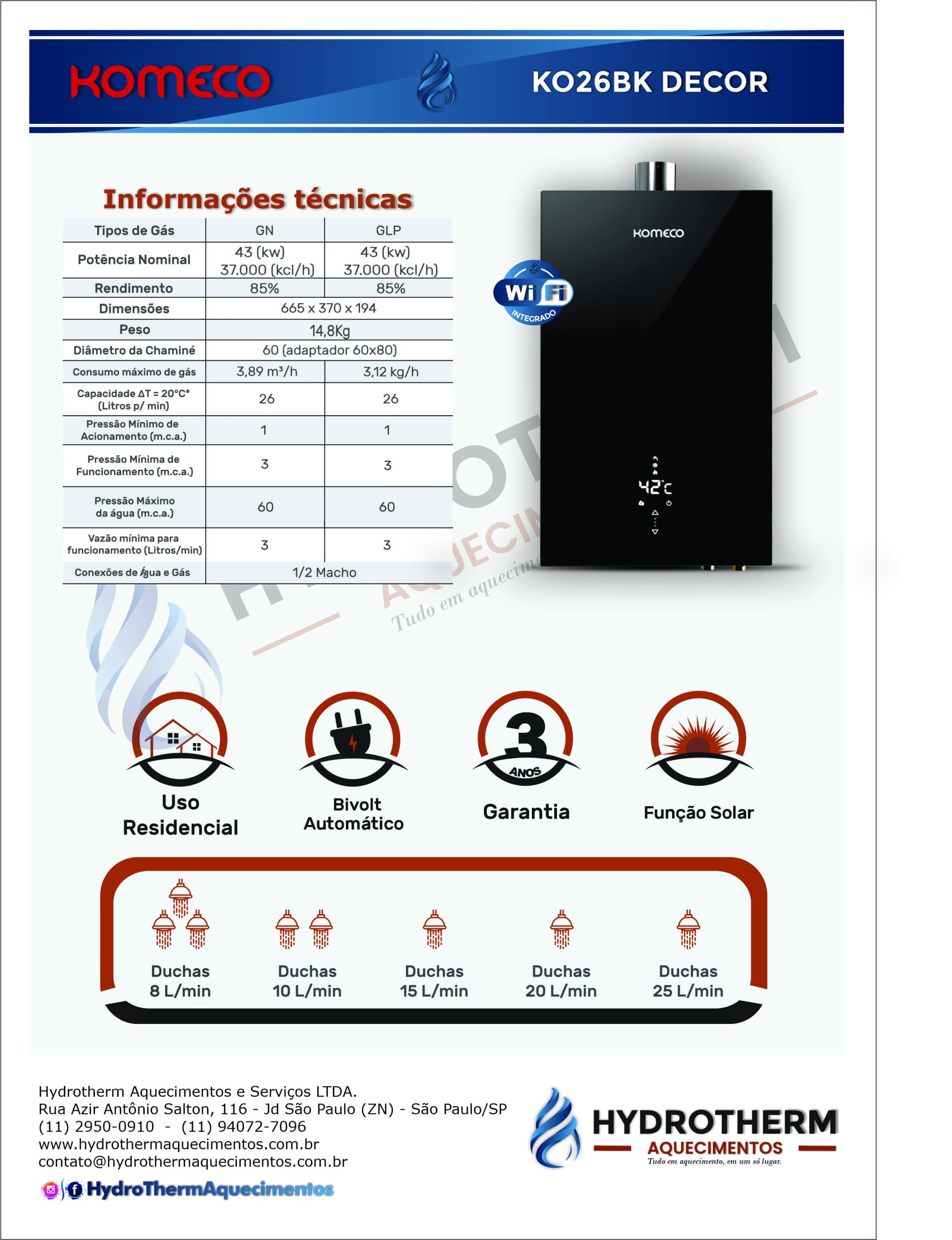 • Capacidade: Alta vazão para até 3 pontos de consumo com máxima performance e segurança.
