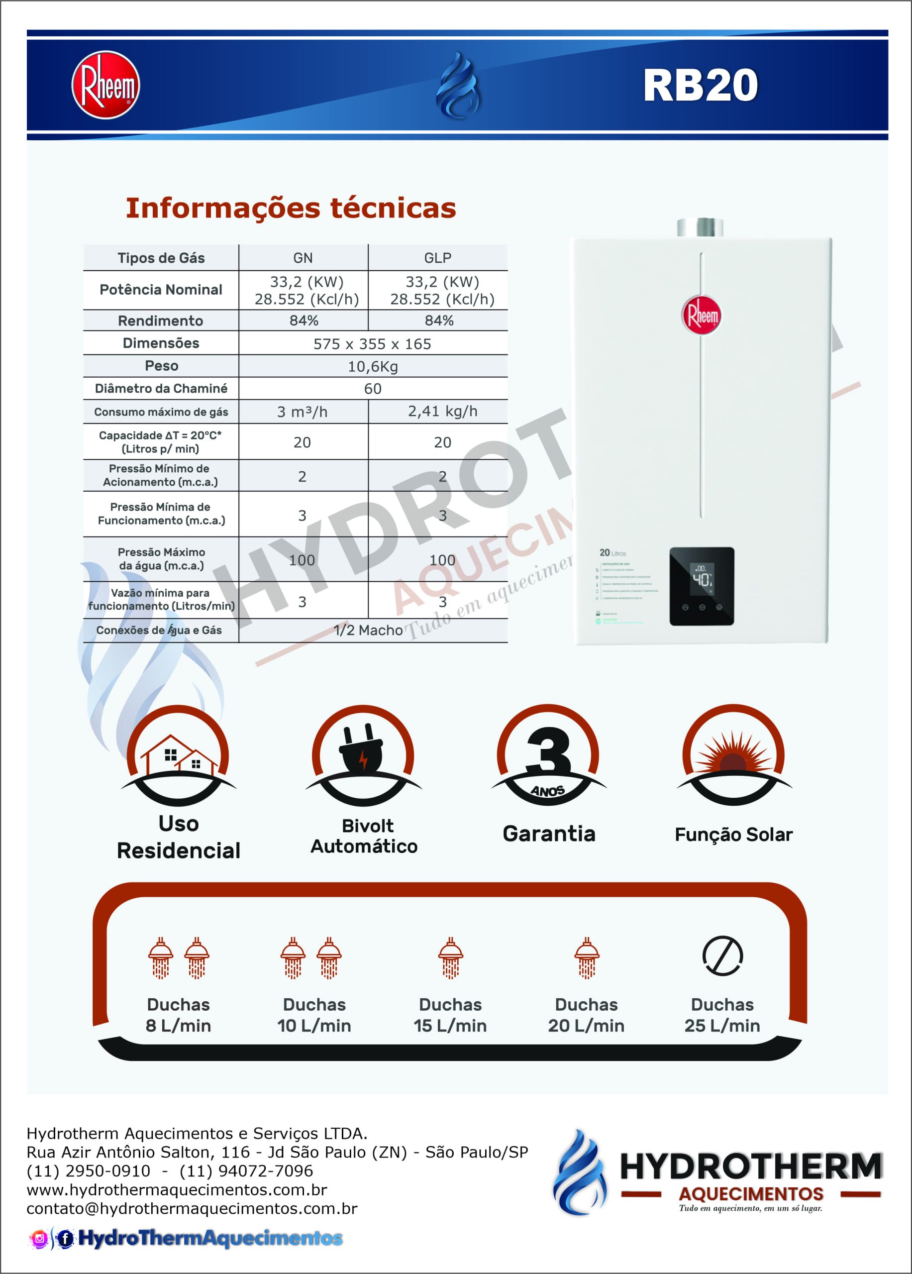 • Capacidade: Atende até 2 duchas simultâneas (8L/min cada) com total estabilidade térmica.